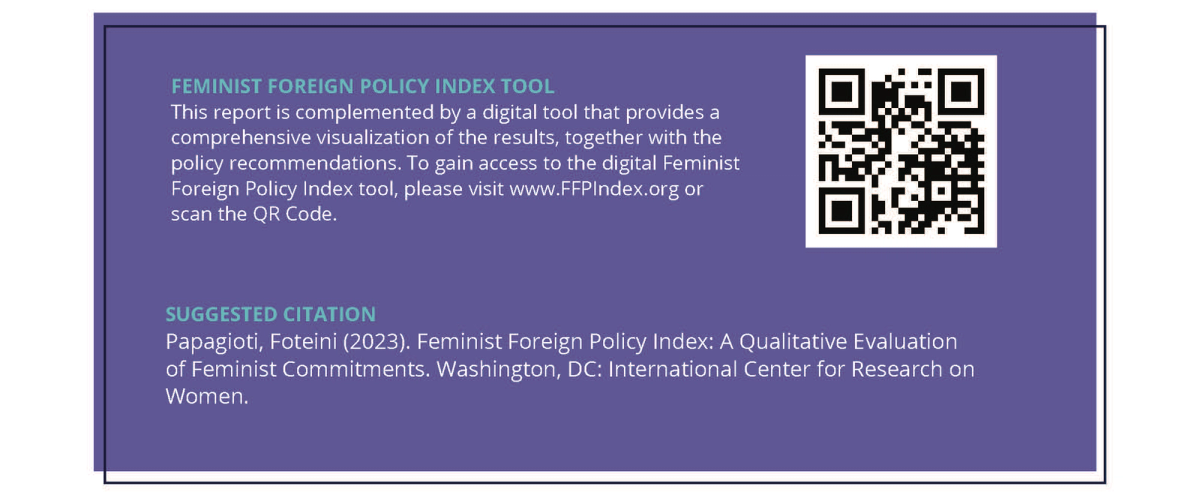 Feminist Foreign Policy Index from the International Center for Research on Women (ICRW) (2023).