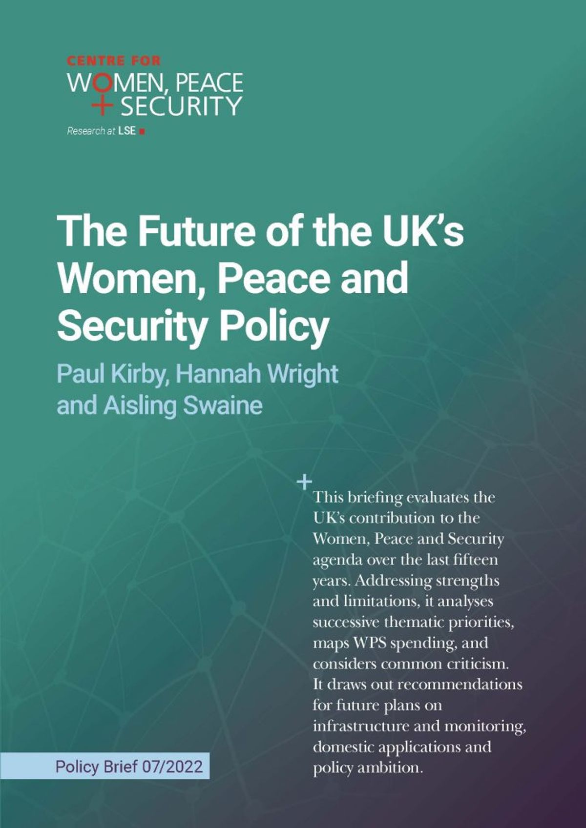 The Future of the UK’s Women, Peace and Security Policy by Paul Kirby, Hannah Wright and Aisling Swaine. Centre for Women, Peace Security Research at the London School of Economics. Policy Brief 07/2022.