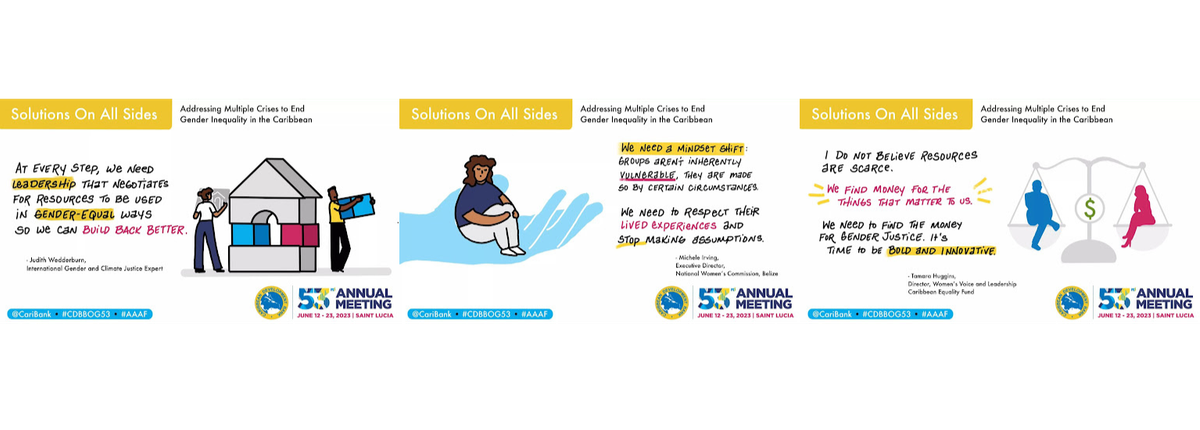 During the recently held 53rd Annual Meeting of the Caribbean Development Bank in St. Lucia, a panel of gender experts were convened to share their views at a seminar entitled “Solutions on All Sides: Addressing Multiple Crises to End Gender Inequality.” The panel included two of our very own WVL-Caribbean Advisors (https://equalityfund.ca/wvl-advisory/judith-wedderburn/), Michele Irving (https://equalityfund.ca/wvl-advisory/michele-irving/) and Judith Wedderburn (https://equalityfund.ca/wvl-advisory/judith-wedderburn/) as well as Tamara Huggins, our WVL-Caribbean Project Director.